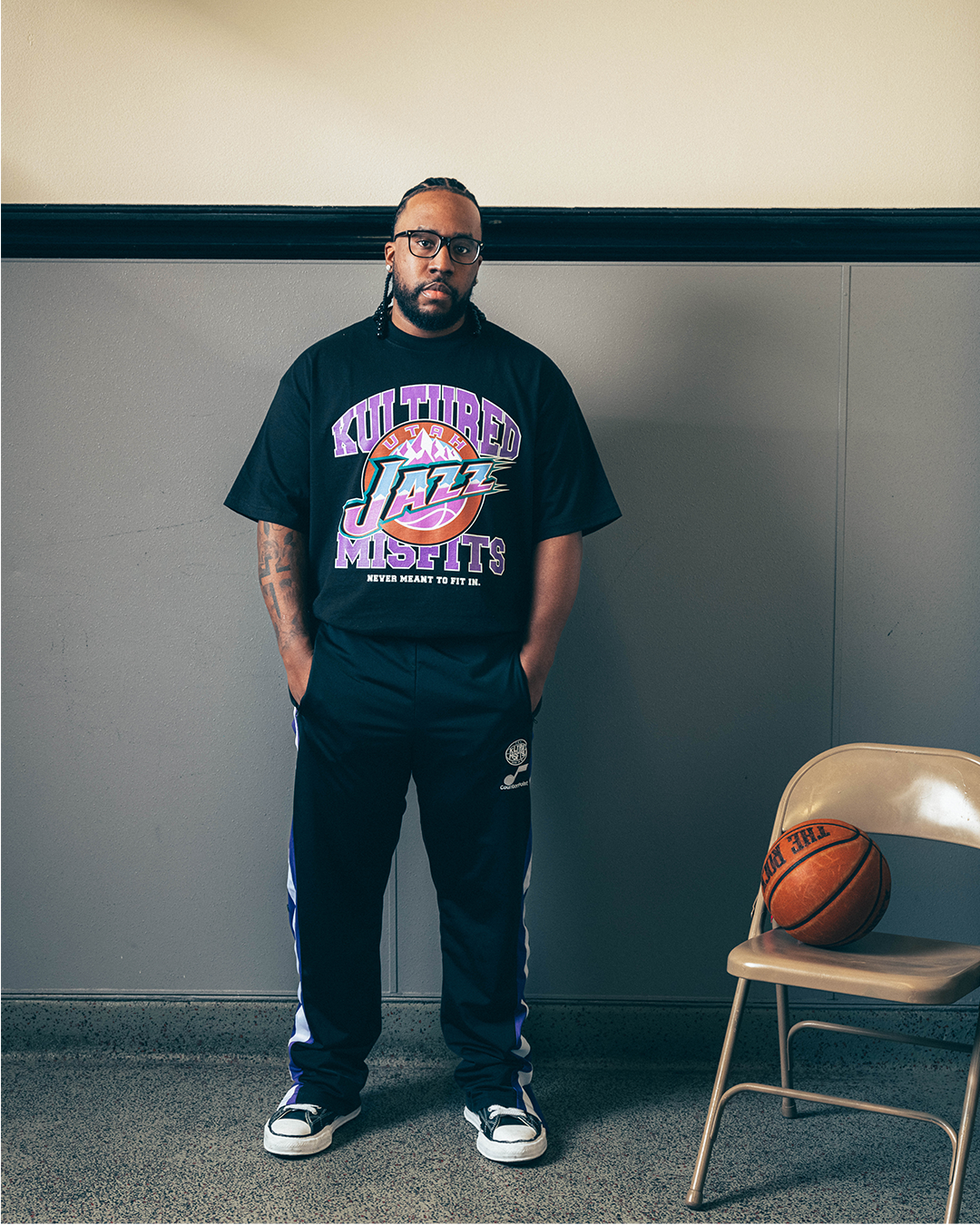 At Kultured Misfits, the design team looked deeper at what these mantras mean beyond the game—how they represent individuality, perseverance, and the journey of carving your own path. This reflection led them to merge the Jazz's ethos with their own guiding principle: "Never Fit In." The collection is where two brands, two cultures, and two mindsets come together as one—celebrating those who embrace their uniqueness while finding unity in the game that connects us all.
