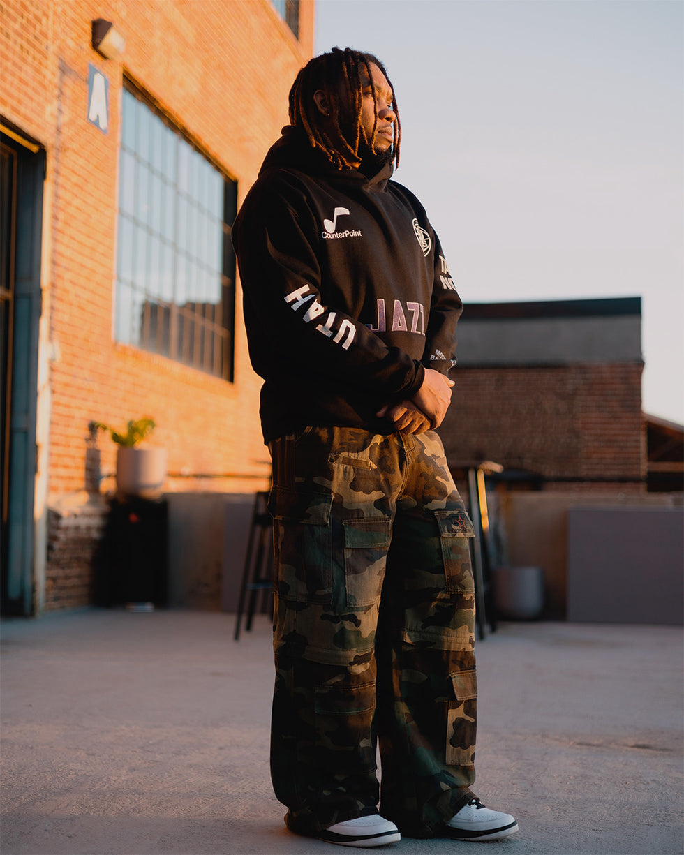 The Utah Jazz x Kultured Misfits collection is an ode to the power of basketball and the rich cultural impact it has had in Utah. Rooted in the Utah Jazz's “Mountain Basketball” brand philosophy, the collection reflects the team's spirit and the culture it has built both on and off the hardwood. Mountain Basketball embraces the spirit of Utah by tying together a passion for basketball, a dynamic community on the rise, and the impact of Utah’s mountainous environment on daily life.